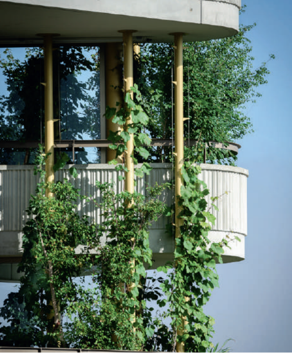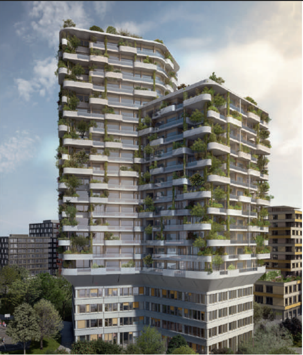 IMAGE : 770-meter-high tower with its intensively greened façade . ©Philipp Hodel, Zug Estates