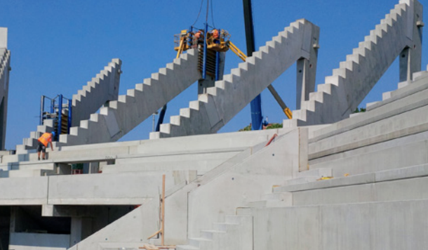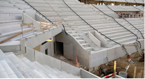 The precast technology also scores in terms of sustainability: during construction of the stadion, energy consumption was reduced by 60% thanks to the precast design. Due to precise planning and better waste management, the amount of waste was reduced by 90% compared to a traditional construction method.